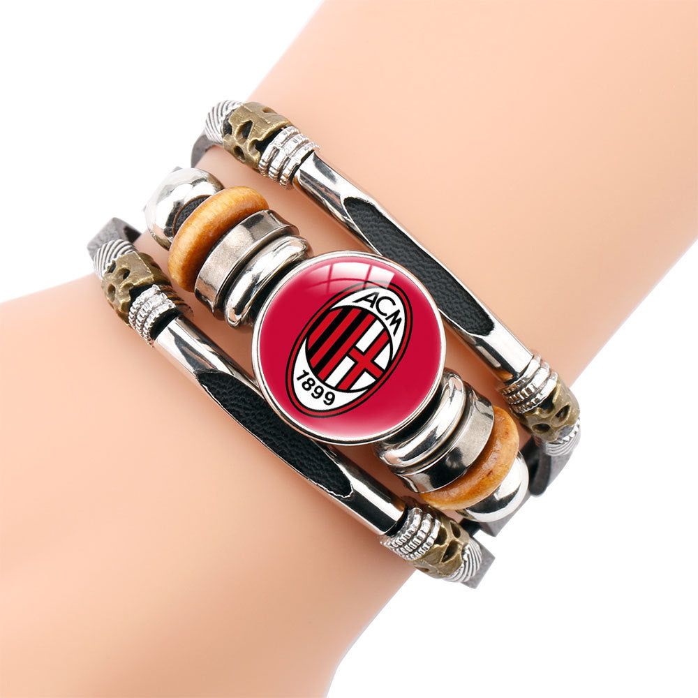 Pulsera de piel de vacuno con escudos de clubes de fútbol europeos para hombre y mujer, pulsera universal de cuentas multicapa, joyería de cuero para aficionados.
