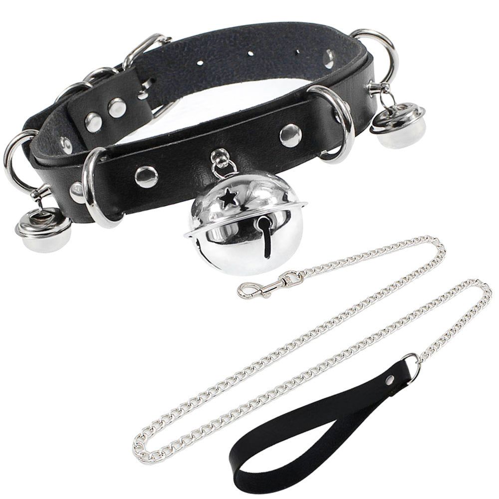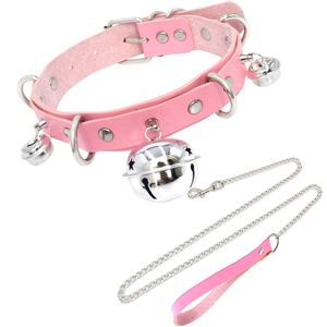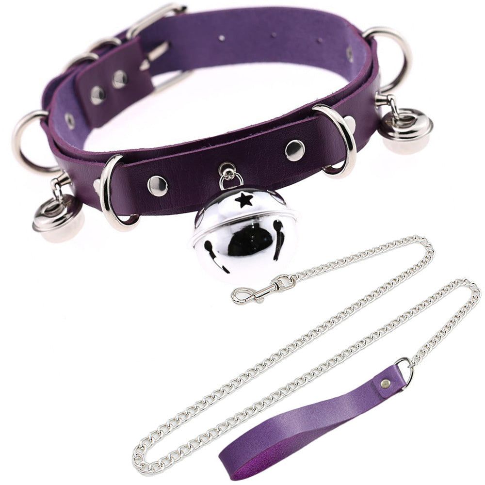 Collar de cuero sintético sexy y exagerado estilo Harajuku transfronterizo europeo y americano, collar con campana personalizado, collar con banda para el cuello y collar de clavícula.